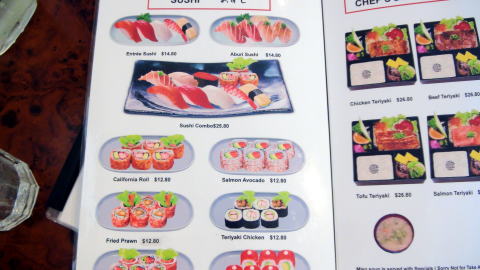 一番ショックだったのはスシを売りにしているのに、テーブルにあった醤油がキッコーマンの小瓶に入ったままの醤油だったこと。