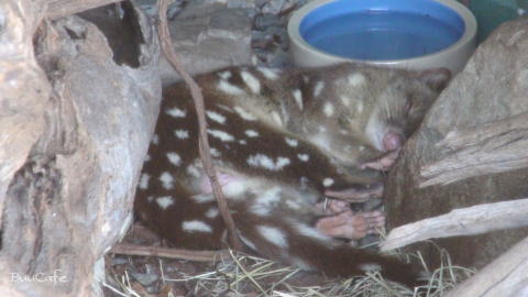 ウエットランドエリア左奥のQuoll(フクロネコ)