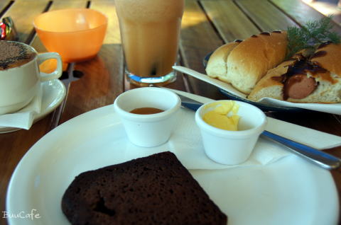 甘い朝食がなく寂しかったぶうママは、温かいバナナブレッド with ハニー&バター